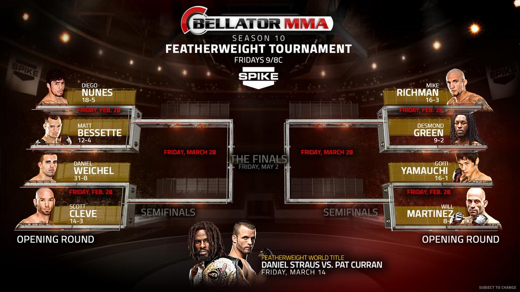 Bellator 256 Everything About The Light Heavyweight Grand Prix from fansided.com The opening odds for the initial fights to start the tournament are listed below. 1 contenders in the featherweight, lightweight and welterweight divisions. It started on april 8, 2010 and ended june 24, 2010. Bellator is also holding tournaments to decide no. All ongoing or upcoming bellator tournament brackets are listed here. Sanchez bellator giving us the ufc tournament we never asked for. Yagshimuradov is a newcomer to bellator. Bellator mma is now on showtime!